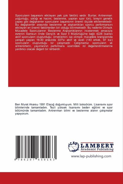 Sporcular¿n bäar¿s¿n¿ etkileyen pek çok faktörü vard¿r. Bunlar; Antrenman yo¿unlu¿u, s¿kl¿¿¿ ve hacim, beslenme, yap¿lan spor türü, bireyin genetik yap¿s¿ gibi de¿i¿kenler sporcular¿n bäar¿s¿n¿n önemli ölçüde etkilemektedir. Bu de¿i¿kenler aras¿nda beslenme ve al¿¿kanl¿klar¿ sporcu performans¿n¿ etkileyen en önemli faktörlerden biri oldu¿u bilinmektedir. Bu nedenle Olimpik Mücadele Sporcular¿n¿n Beslenme Al¿¿kanl¿klar¿n¿n incelenmek amac¿yla evrenini Samsun ilinde Gençlik ve Spor ¿l Müdürlü¿ü'ne bäl¿ 4226 lisansl¿ aktif sporcular¿n olu¿turdu¿u; örneklemini ise olimpik mücadele bran¿lar¿nda yar¿¿an yälar¿ 16-30 aras¿nda 337'si aktif ve vizeli (143 erkek, 97 k¿z) sporcular¿n olu¿turdu¿u bir çal¿¿mad¿r. Çal¿¿mam¿z sporcular¿n ve antrenörlerin, yay¿nlar¿n¿n performans üzerindeki rol de¿erlendirmelerine yard¿mc¿ olacak de¿erli bir rehberdir.