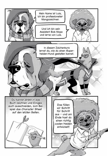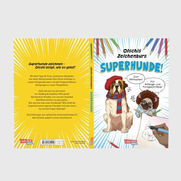 Mit ihren Live-Workshops gibt die »Baddog & Goodboy«-Zeichnerin Olschi auf Messen und im Handel seit Erscheinen ihres Mangas Groß und Klein tolle Tipps zum Zeichnen von Hunden. Jetzt erscheint mit ihrem ersten Zeichenkurs »Superhunde« eine Anleitung zum Mitmachen in Buchform. Der Bernhardiner-Künstler Luis und sein Assistent Bob Mops zeigen, wie es geht: Wie zeichnet man einen Hundekopf? Wie erhält der Hund einen eigenen Charakter und was macht ihn auf dem Papier lebendig? Mit lustigen Tricks und praktischen Beispielen führt Olschi sowohl Anfänger zu ersten Erfolgen als auch Fortgeschrittene zu neuen Perspektiven.