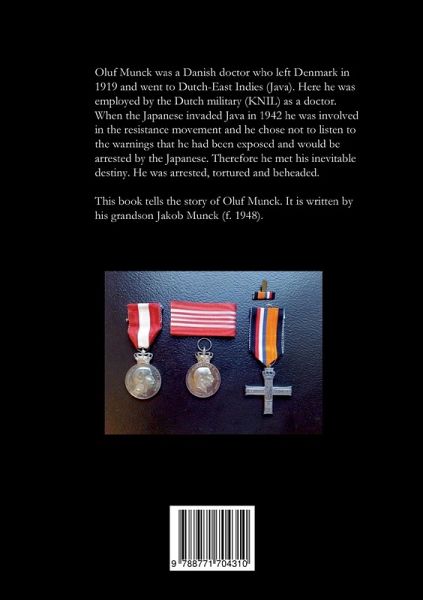 Oluf Munck was a Danish doctor who left his homeland in 1919 and went to Dutch-East Indies (Java). Here he was employed by the Dutch military (KNIL) as a doctor. When the Japanese invaded Java in 1942 he was involved in the resistance movement and he chose not to listen to the warnings that he had been exposed and would be arrested by the Japanese. Therefore he met his inevitable destiny. He was arrested, tortured and beheaded.