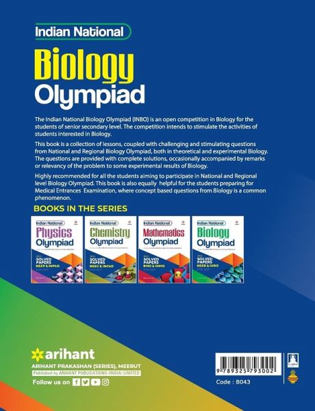 1. Indian National Biology Olympiad is a well researched and well balance prep guide 2. The preparatory book is divided into 8 lessons 3. Various challenging questions are formed from regional and National Olympiad 4. Provides good set of Solved Papers and solutions (2014-2021) In the scenario of cut throat competition, a student not just be academically active but Logically smart. And, for the overall growth of a student, Olympiads become the ladder of success that allows aspirants to explore their capabilities and maximise their true potential. The present book of "Indian National Biology Olympiad" is well researched, resourceful and well balanced preparatory guide that is revised for aspirants who are aiming to appear for this test. Divided into chapters, this book is designed to provide insight and proficiency in almost all areas of Biology. Complete and Exhaustive theories are provided along with good number of solved examples as per Indian National Biology Olympiad. Serving as an ideal source of practice each chapter has 2 level exercises; Regional & National along with the Detailed answers for better conceptual understanding. At the end, Solved papers of NSEB & INBO are given for thorough practice. This book highly recommended for the students who are aiming to participate in Biology Olympiads and other competitive entrances. TOC Biosystematics, Cell Biology, Genetics and Evolution, Plant Anatomy, Physiology and Reproduction, Animal Anatomy, physiology and Reproduction, Ecology and Environment, Ethology, Biology in Human Welfare. NSEB & INBO (2014-2021)