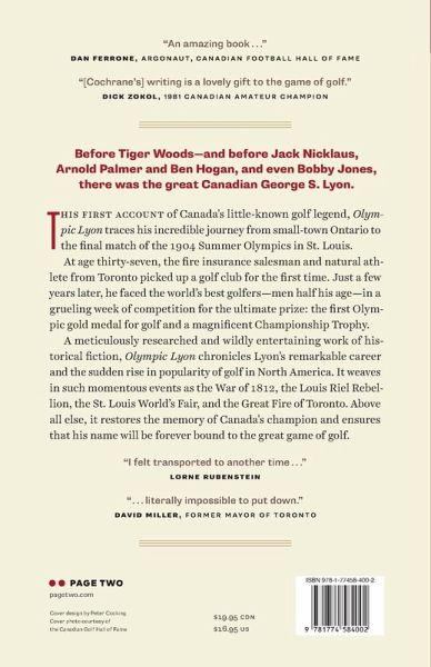 Before Tiger Woods--and before Jack Nicklaus, Arnold Palmer and Ben Hogan, and even Bobby Jones, there was the great Canadian George S. Lyon. This first account of Canada's little-known golf legend, Olympic Lyon traces his incredible journey from small-town Ontario to the final match of the 1904 Summer Olympics in St. Louis. At age thirty-seven, the fire insurance salesman and natural athlete from Toronto picked up a golf club for the first time. Just a few years later, he faced the world's best golfers--men half his age--in a grueling week of competition for the ultimate prize: the first Olympic gold medal for golf and a magnificent Championship Trophy. A meticulously researched and wildly entertaining work of historical fiction, Olympic Lyon chronicles Lyon's remarkable career and the sudden rise in popularity of golf in North America. It weaves in such momentous events as the War of 1812, the Louis Riel Rebellion, the St. Louis World's Fair, and the Great Fire of Toronto. Above all else, it restores the memory of Canada's champion and ensures that his name will be forever bound to the great game of golf.