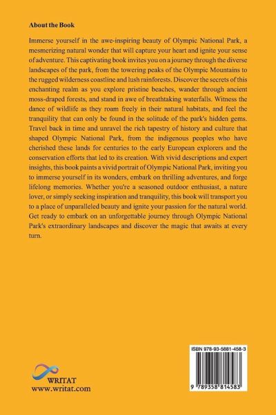 Immerse yourself in the awe-inspiring beauty of Olympic National Park, a mesmerizing natural wonder that will capture your heart and ignite your sense of adventure. This captivating book invites you on a journey through the diverse landscapes of the park, from the towering peaks of the Olympic Mountains to the rugged wilderness coastline and lush rainforests. Discover the secrets of this enchanting realm as you explore pristine beaches, wander through ancient moss-draped forests, and stand in awe of breathtaking waterfalls. Witness the dance of wildlife as they roam freely in their natural habitats, and feel the tranquility that can only be found in the solitude of the park's hidden gems. Travel back in time and unravel the rich tapestry of history and culture that shaped Olympic National Park, from the indigenous peoples who have cherished these lands for centuries to the early European explorers and the conservation efforts that led to its creation. With vivid descriptions and expert insights, this book paints a vivid portrait of Olympic National Park, inviting you to immerse yourself in its wonders, embark on thrilling adventures, and forge lifelong memories. Whether you're a seasoned outdoor enthusiast, a nature lover, or simply seeking inspiration and tranquility, this book will transport you to a place of unparalleled beauty and ignite your passion for the natural world. Get ready to embark on an unforgettable journey through Olympic National Park's extraordinary landscapes and discover the magic that awaits at every turn.