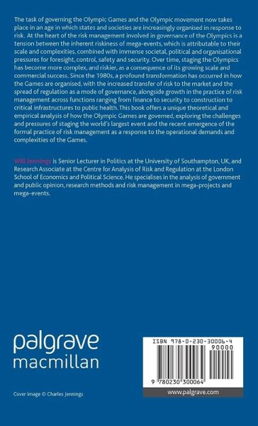 '...in Olympic Risks, Will Jennings provides an insightful analysis and commentary which is of relevance to scholars, policy makers, government agencies and public bodies, host cities and countries and mega event organizers. His work clearly and comprehensively accentuates the increasing influence of societal perceptions about risk and the impact of this on the governance of the Olympic Games.' - Tracey Taylor, UTS Business School, University of Technology, Sydney Australia, International Journal of Sport Policy and Politics