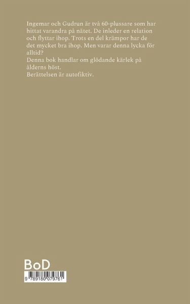 Ingemar och Gudrun är två 60-plussare som hittat varandra på nätet. De inleder en relation och flyttat ihop. Trots en del krämpor har de det mycket bra ihop. Men varar denna lycka för alltid? Denna bok handlar om glödande kärlek på ålderns höst. Berättelsen är autofiktiv.
