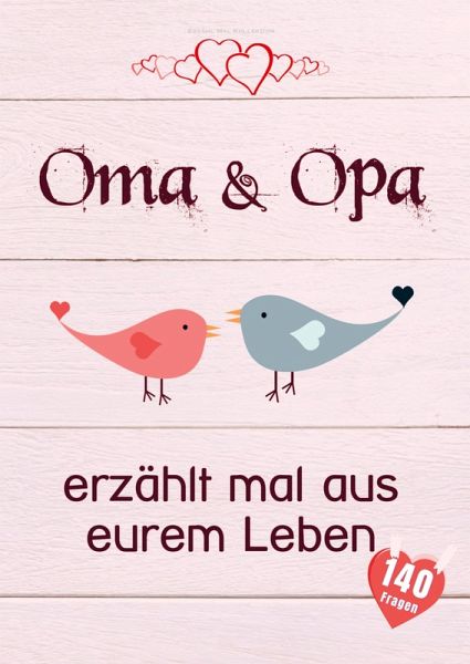 Ein außergewöhnlich(!) persönliches und kreatives Geschenk zu Weihnachten, Hochzeitstag, Geburtstag oder Muttertag:Ihre Großeltern haben schon echt viel erlebt. Haben tolle Dinge unternommen, viel Spaß gehabt und sind gemeinsam durch Dick und Dünn gegangen.Bei aller Leichtigkeit, Freude und auch Schwierigkeiten haben sie stets an Weisheit zugenommen, Erfahrungen gesammelt und wurden tiefgründig geprägt. All diese Erlebnisse und Erfahrungen aus dem Leben Ihrer Großeltern sind ein wertvoller Schatz an Erinnerungen für Sie.Jedoch: Ihre Großeltern haben Ihnen noch vieles gar nicht erzählt.Einzigartig, kreativ & unvergesslich:- Ihre Großeltern erhalten 140 tiefgründige Fragen, um die schönsten und emotionalsten Momente ihres Lebens für Sie niederzuschreiben- Ein außergewöhnlich(!) persönliches und kreatives Geschenk zu Weihnachten, Hochzeitstag, Geburtstag oder Muttertag-Kunstvolle Bilder untermalen die großartigen Fragen- Sie gewinnen wertvolle Weisheiten und Ratschläge aus dem reichhaltigen Erfahrungsschatz Ihrer Großeltern-Wertvolle Geschichten bewahren Ihnen ein unvergessliches Andenken an Oma & OpaSichern Sie sich jetzt Ihr Exemplar!