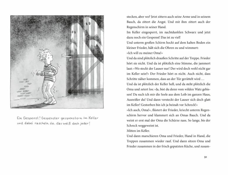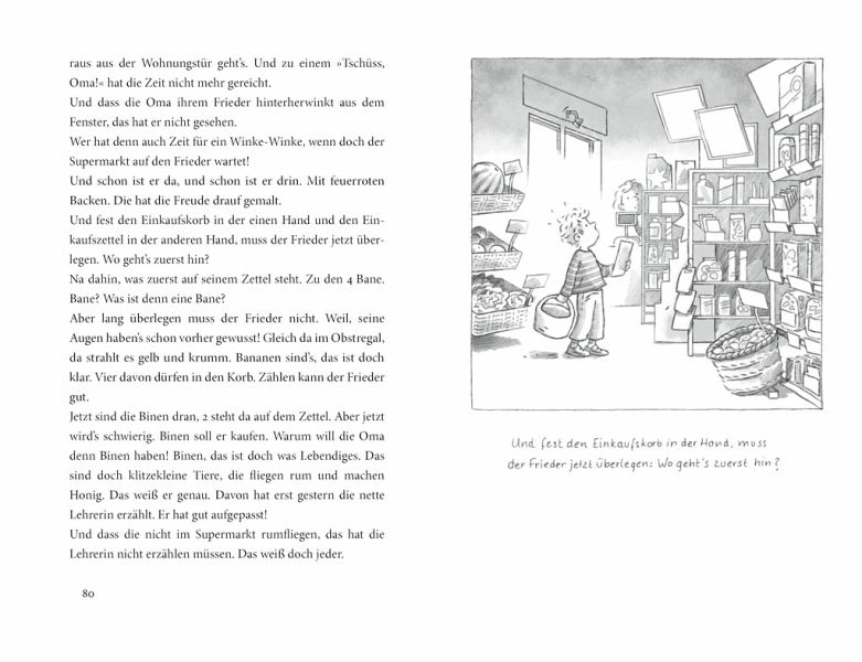 Ob Frieder Schneewittchen spielt, alle Gummibärchen auf einmal vernascht, sich die Haare abschnippelt oder beschließt, zur netten Lehrerin zu ziehen: Alle Geschichten zaubern ein Lächeln ins Gesicht und machen garantiert glücklich. Voller Fabulierfreude erzählt Gudrun Mebs lustige und spannende Geschichten von dem kleinen Frieder und seiner Oma. Geschichten, die alle begeistern.