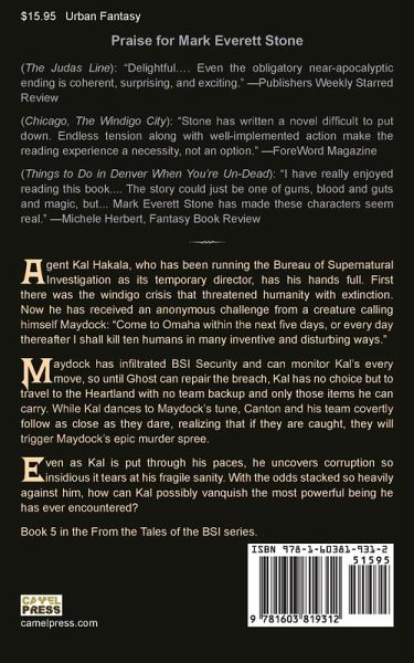 Agent Kal Hakala, who has been running the Bureau of Supernatural Investigation as its temporary director, has his hands full. First there was the windigo crisis that threatened humanity with extinction. Now he has received an anonymous challenge from a creature calling himself Maydock: "Come to Omaha within the next five days, or every day thereafter I shall kill ten humans in many inventive and disturbing ways." Maydock has infiltrated BSI Security and can monitor Kal's every move, so until Ghost can repair the breach, Kal has no choice but to travel to the Heartland with no team backup and only those items he can carry. While Kal dances to Maydock's tune, Canton and his team covertly follow as close as they dare, realizing that if they are caught, they will trigger Maydock's epic murder spree. Even as Kal is put through his paces, he uncovers corruption so insidious it tears at his fragile sanity. With the odds stacked so heavily against him, how can Kal possibly vanquish the most powerful being he has ever encountered? Book 5 in the From the Tales of the BSI series.