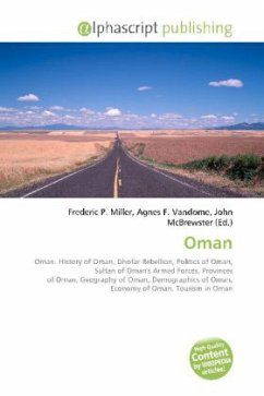 Please note that the content of this book primarily consists of articles available from Wikipedia or other free sources online.Oman. History of Oman, Dhofar Rebellion, Politics of Oman, Sultan of Oman''s Armed Forces, Provinces of Oman, Geography of Oman, Demographics of Oman, Economy of Oman, Tourism in Oman, Transport in Oman, Education in Oman, Culture of Oman, West Asian cinema, Foreign relations of Oman, Telecommunications in Oman, Arabic language, Omani rial, Outline of Oman