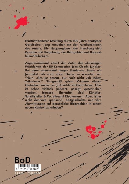 Streifzug durch hundert Jahre deutscher Geschichte eng verwoben mit 5 Generationen Familienchronik des Autors. Hauptregionen der Handlung: Dresden und Umgebung, Ruhrgebiet, Paderborn.