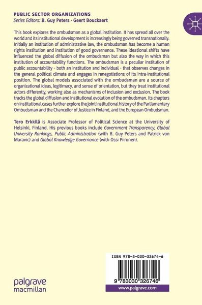 This book explores the ombudsman as a global institution. It has spread all over the world and its institutional development is increasingly being governed transnationally. Initially an institution of administrative law, the ombudsman has become a human rights institution and institution of good governance. These ideational shifts have influenced the global diffusion of the ombudsman but also the way in which this institution of accountability functions. The ombudsman is a peculiar institution of public accountability - both an institution and individual - that observes changes in the general political climate and engages in renegotiations of its intra-institutional position. The global models associated with the ombudsman are a source of organizational ideas, legitimacy, and sense of orientation, but they treat institutional actors differently, working also as mechanisms of inclusion and exclusion. The book tracks the global diffusion and institutional evolution of the ombudsman. Itschapters on institutional cases further explore the joint institutional history of the Parliamentary Ombudsman and the Chancellor of Justice in Finland, and the European Ombudsman.