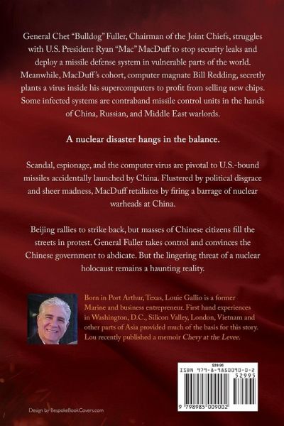 Omega-Alpha NX2 - Spies, Missiles, and Clouds of War A suspense-thriller about geopolitical conflicts and the world is on the brink of nuclear war. Any minor incident could set off a disaster. U.S. President Ryan "Mac" MacDuff consistently states to the public that "there are no nuclear missiles pointed at our people." But the CIA reported China's testing of warheads within the range of the U.S. and the impending threat they pose. General Chet "Bulldog" Fuller, Chairman of the Joint Chiefs of Staff, admonishes MacDuff to stop the security leaks and deploy a missile defense system. MacDuff refuses, stating there is no danger and that we must continue our mutual trade policy. MacDuff's silent partner, Bill Redding, a high-tech oligarch, secretly plants a virus in China's missile control units with hopes of profiting from the sale of replacement units. When the virus accidentally launches a missile toward the U.S., MacDuff swiftly retaliates with an attack on Chinese bases. All-out war hangs in the balance.