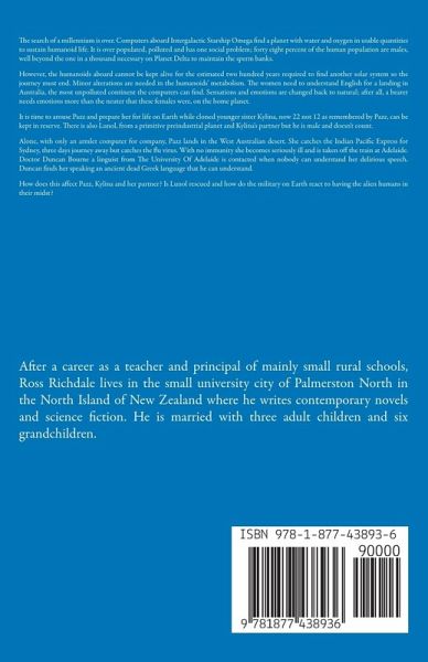 The search of a millennium is over. Computers aboard Intergalactic Starship Omega find a planet with water and oxygen in usable quantities to sustain humanoid life. It is over populated, polluted and has one social problem; forty eight percent of the human population are males, well beyond the one in a thousand necessary on Planet Delta to maintain the sperm banks. However, the humanoids aboard cannot be kept alive for the estimated two hundred years required to find another solar system so the journey must end. Minor alterations are needed in the humanoids' metabolism. The women need to understand English for a landing in Australia, the most unpolluted continent the computers can find. Sensations and emotions are changed back to natural; after all, a bearer needs emotions more than the neuter that these females were, on the home planet. It is time to arouse Pazz and prepare her for life on Earth while cloned younger sister Kylina, now 22 not 12 as remembered by Pazz, can be kept in reserve. There is also Lunol, from a primitive preindustrial planet and Kylina's partner but he is male and doesn't count. Alone, with only an armlet computer for company, Pazz lands in the West Australian desert. She catches the Indian Pacific Express for Sydney, three days journey away but catches the flu virus. With no immunity she becomes seriously ill and is taken off the train at Adelaide. Doctor Duncan Bourne a linguist from The University Of Adelaide is contacted when nobody can understand her delirious speech. Duncan finds her speaking an ancient dead Greek language that he can understand. After she recovers, they become friends. Pazz adapts to life on Earth and, by having her qualifications entered into Earth computers, becomes Doctor Pazz D'rose, a mathematician and biochemist. How does this affect Pazz, Kylina and her partner? Is Lunol rescued and how do the military on Earth react to having the alien humans in their midst?