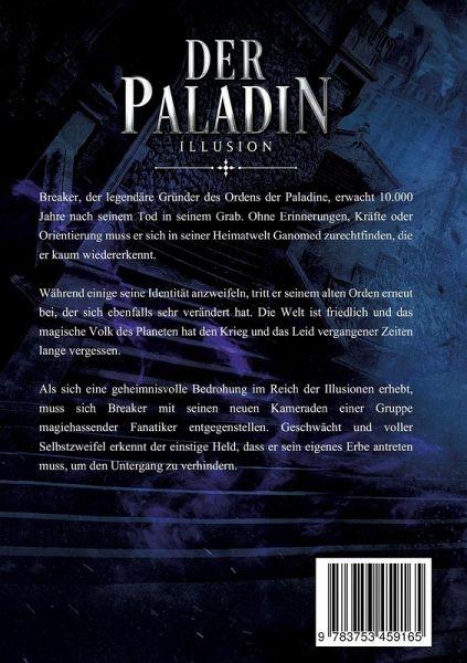 Breaker, der legendäre Gründer des Ordens der Paladine, erwacht 10.000 Jahre nach seinem Tod in seinem Grab. Ohne Erinnerungen, Kräfte oder Orientierung muss er sich in seiner Heimatwelt Ganomed zurechtfinden, die er kaum wiedererkennt.Während einige seine Identität anzweifeln, tritt er seinem alten Orden erneut bei, der sich ebenfalls sehr verändert hat. Die Welt ist friedlich und das magische Volk des Planeten hat den Krieg und das Leid vergangener Zeiten lange vergessen.Als sich eine geheimnisvolle Bedrohung im Reich der Illusionen erhebt, muss sich Breaker mit seinen neuen Kameraden einer Gruppe magiehassender Fanatiker entgegenstellen. Geschwächt und voller Selbstzweifel erkennt der einstige Held, dass er sein eigenes Erbe antreten muss, um den Untergang zu verhindern.Dies ist Band 1 der Paladin-Subreihe und der 9. Titel der Omni Legends-Reihe.