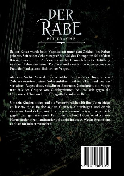 Baldor Raven wurde beim Vogelstamm unter dem Zeichen des Raben geboren. Seit seiner Geburt trägt er das Mal des Totengottes Sel auf dem Rücken, was ihn zum Außenseiter macht. Dennoch findet er Erfüllung in einem Leben mit seiner Partnerin und zwei Kindern, umgeben von Freunden und seinem Halbbruder Vargas.Als eines Nachts Angreifer des benachbarten Reichs der Dominus sein Zuhause zerstören, seinen Sohn entführen und seine Frau und Tochter vor seinen Augen töten, schwört er Blutrache. Gemeinsam mit Vargas tritt er einer Gruppe von Gleichgesinnten bei, die sich gegen die Dominus erheben und ihre…mehr