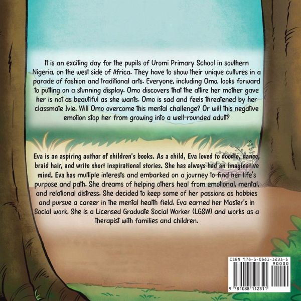 It is an exciting day for the pupils of Uromi Primary School in southern Nigeria, on the west side of Africa. They have to show their unique cultures in a parade of fashion and traditional arts. Everyone, including Omo, looks forward to putting on a stunning display. Omo discovers that the attire her mother gave her is not as beautiful as she wants. Omo is sad and feels threatened by her classmate Ivie. Will Omo overcome this mental challenge? Or will this negative emotion stop her from growing into a well-rounded adult?