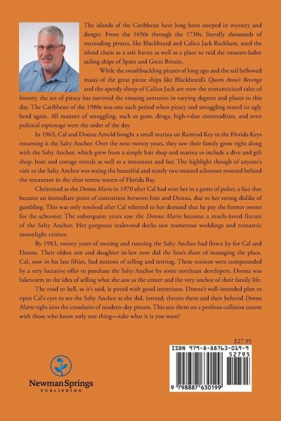 The islands of the Caribbean have long been steeped in mystery and danger. From the 1650s through the 1730s, literally thousands of marauding pirates, like Blackbeard and Calico Jack Rackham, used the island chain as a safe haven as well as a place to raid the treasure-laden sailing ships of Spain and Great Britain. While the swashbuckling pirates of long ago and the sail bellowed masts of the great pirate ships like Blackbeard's Queen Anne's Revenge and the speedy sloop of Calico Jack are now the romanticized tales of history, the act of piracy has survived the ensuing centuries in varying degrees and places to this day. The Caribbean of the 1980s was one such period when piracy and smuggling reared its ugly head again. All manner of smuggling, such as guns, drugs, high-value commodities, and even political espionage were the order of the day. In 1963, Cal and Donna Arnold bought a small marina on Ramrod Key in the Florida Keys renaming it the Salty Anchor. Over the next twenty years, they saw their family grow right along with the Salty Anchor, which grew from a simple bait shop and marina to include a dive and gift shop, boat and cottage rentals as well as a restaurant and bar. The highlight though of anyone's visit to the Salty Anchor was seeing the beautiful and stately two-masted schooner moored behind the restaurant in the clear serene waters of Florida Bay. Christened as the Donna Marie in 1970 after Cal had won her in a game of poker, a fact that became an immediate point of contention between him and Donna, due to her strong dislike of gambling. This was only resolved after Cal relented to her demand that he pay the former owner for the schooner. The subsequent years saw the Donna Marie become a much-loved fixture of the Salty Anchor. Her gorgeous teakwood decks saw numerous weddings and romantic moonlight cruises. By 1983, twenty years of owning and running the Salty Anchor had flown by for Cal and Donna. Their oldest son and daughter in-law now did the lion's share of managing the place. Cal, now in his late fifties, had notions of selling and retiring. These notions were compounded by a very lucrative offer to purchase the Salty Anchor by some northeast developers. Donna was lukewarm to the idea of selling what she saw as the center and the very anchor of their family life. The road to hell, as it's said, is paved with good intentions. Donna's well-intended plan to open Cal's eyes to see the Salty Anchor as she did, instead, thrusts them and their beloved Donna Marie right into the crosshairs of modern-day pirates. This sets them on a perilous collision course with those who know only one thing- take what it is you want!