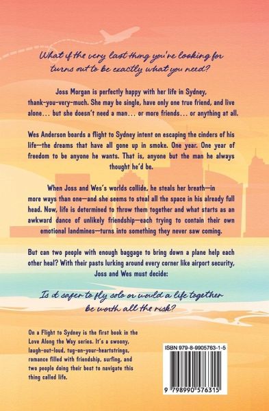 What if the very last thing you're looking for turns out to be exactly what you need? Joss Morgan is perfectly happy with her life in Sydney, thank-you-very-much. She may be single, have only one true friend, and live alone... but she doesn't need a man... or more friends... or anything at all. Wes Anderson boards a flight to Sydney intent on escaping the cinders of his life-the dreams that have all gone up in smoke. One year. One year of freedom to be anyone he wants; that is, anyone but the man he always thought he'd be. When Joss and Wes's worlds collide, he steals her breath-in more ways than one-and she seems to steal all the space in his already full head. Now, life is determined to throw them together and what starts as an awkward dance of unlikely friendship-each trying to contain their own emotional landmines-turns into something they never saw coming. But can two people with enough baggage to bring down a plane help each other heal? With their pasts lurking around every corner like airport security, Joss and Wes must decide: Is it safer to fly solo or would a life together be worth all the risk?