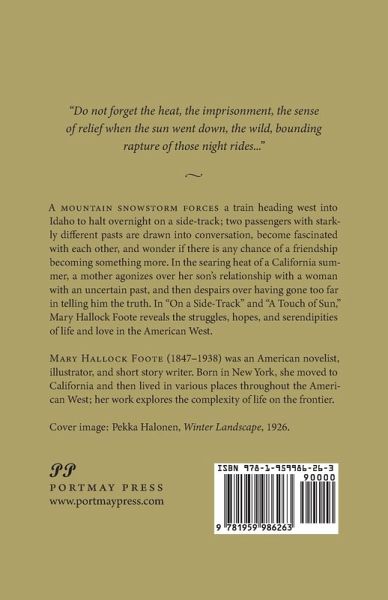 A mountain snowstorm forces a train heading west into Idaho to halt overnight on a side-track; two passengers with starkly different pasts are drawn into conversation, become fascinated with each other, and wonder if there is any chance of a friendship becoming something more. In the searing heat of a California summer, a mother agonizes over her son's relationship with a woman with an uncertain past, and then despairs over having gone too far in telling him the truth. In "On a Side-Track" and "A Touch of Sun," Mary Hallock Foote reveals the struggles, hopes, and serendipities of life and love in the American West.