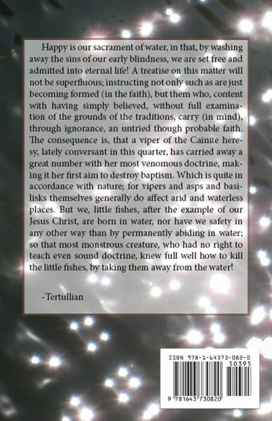 Happy is our sacrament of water, in that, by washing away the sins of our early blindness, we are set free and admitted into eternal life! A treatise on this matter will not be superfluous; instructing not only such as are just becoming formed (in the faith), but them who, content with having simply believed, without full examination of the grounds of the traditions, carry (in mind), through ignorance, an untried though probable faith. The consequence is, that a viper of the Cainite heresy, lately conversant in this quarter, has carried away a great number with her most venomous doctrine, making it her first aim to destroy baptism. Which is quite in accordance with nature; for vipers and asps and basilisks themselves generally do affect arid and waterless places. But we, little fishes, after the example of our Jesus Christ, are born in water, nor have we safety in any other way than by permanently abiding in water; so that most monstrous creature, who had no right to teach even sound doctrine, knew full well how to kill the little fishes, by taking them away from the water!