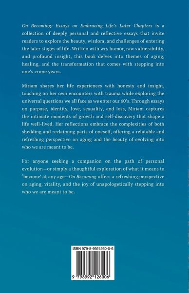 On Becoming offers a transformative journey for women ages 30 and beyond, blending personal stories, reflections on identity, and powerful insights rooted in the Crone archetype. Drawing deeply from her own trauma and life experiences, Miriam illuminates the path to healing by intertwining candid lessons with practical wisdom, allowing readers to witness how adversity can become a catalyst for growth and self-discovery. Through chapters on letting go, personal growth, and embracing uncertainty, readers are guided to rediscover their bodies, cultivate mindful self-awareness, and rekindle creative fire. Themes of vulnerability, deep connection, and ancestral wisdom pave the way for redefining love, purpose, and success, while heartfelt explorations of sexuality and the divine feminine celebrate the enduring power of womanhood. This side table companion invites you to step boldly into your third act, forging an authentic path that honors both the seasons of life and the timeless wisdom of the crone within.