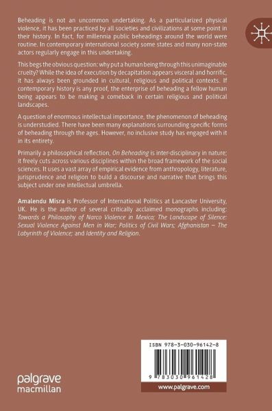 Primarily a philosophical reflection, On Beheading is inter-disciplinary in nature; it freely cuts across various disciplines within the broad framework of the social sciences. It uses a vast array of empirical evidence from anthropology, literature, jurisprudence and religion to build a discourse and narrative that brings this subject under one intellectual umbrella.