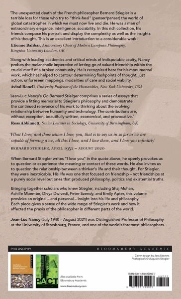"What I love, and those whom I love, you, that is to say us in so far as we are capable of forming a we, all this I love, and I love them, and I love you infinitely" (Bernard Steigler April 1952- August 2020). When Bernard Stiegler writes "I love you" in the quote above, he openly provokes us to question or experience the meaning or contact of these words. He also invites us to question the relationship between a thinker's life and their thought. For Stiegler, they were inextricable. His life was one that focused on friendship but not friendships at a purely social level but ones that produced philosophy, politics, and existential truths. Bringing together scholars who knew Stiegler, including Shaj Mohan, Achille Mbembe, Divya Dwivedi, Peter Szendy, and Emily Apter, this volume provides an original - and personal - insight into his life and philosophy. Each piece gives a sense of the wide range of Stiegler's work and how it affected the praxis of the philosopher in different parts of the world.