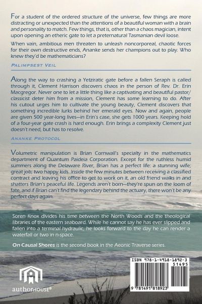 For a student of the ordered structure of the universe, few things are more distracting or unexpected than the attentions of a beautiful woman with a brain and personality to match. Few things, that is, other than a chaos magician, intent upon opening an etheric gate to let a preternatural Tasmanian devil loose. When vain, ambitious men threaten to unleash noncorporeal, chaotic forces for their own destructive ends, Ananke sends her champions out to play. Who knew they'd be mathematicians. Palimpsest Veil Along the way to crashing a Yetziratic gate before a fallen Seraph is called through it, Clement Harrison discovers chaos in the person of Rev. Dr. Erin MacGregor. Never one to let a little thing like a captivating and beautiful pastor/classicist deter him from a mission, Clement has some learning to do. After his cutout urges him to cultivate the young beauty, Clement discovers that something incredible lurks behind her emerald eyes. Now and again, people are given 500 year-long lives-in Erin's case, she gets 1000 years. Keeping hold of a four-year gate crash is hard enough. Erin brings a complexity Clement just doesn't need, but has to resolve. Ananke Protocol Volumetric manipulation is Brian Cornwall's specialty in the mathematics department of Quantum Paideia Corporation. Except for the ruthless humid summers along the Delaware River, Brian has a perfect life: a stunning wife; great job; two happy kids. Inside the few minutes between receiving a classified contract and leaving his office to get to work on it, an old friend walks in and shatters Brian's peaceful life. Legends aren't born-they're spun on the loom of fate, and if Brian can't find the legendary behind the actuary, there won't be any perfect days again.