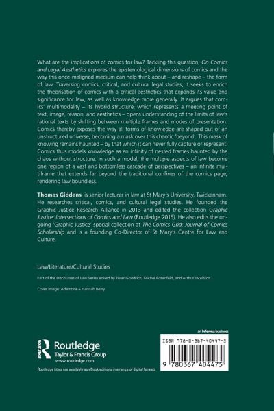 What are the implications of comics for law? Tackling this question, On Comics and Legal Aesthetics explores the epistemological dimensions of comics and the way this once-maligned medium can help think about - and reshape - the form of law. Traversing comics, critical, and cultural legal studies, it seeks to enrich the theorisation of comics with a critical aesthetics that expands its value and significance for law, as well as knowledge more generally. It argues that comics' multimodality - its hybrid structure, which represents a meeting point of text, image, reason, and aesthetics - opens understanding of the limits of law's rational texts by shifting between multiple frames and modes of presentation. Comics thereby exposes the way all forms of knowledge are shaped out of an unstructured universe, becoming a mask over this chaotic 'beyond'. This mask of knowing remains haunted - by that which it can never fully capture or represent. Comics thus models knowledge as an infinity of nested frames haunted by the chaos without structure. In such a model, the multiple aspects of law become one region of a vast and bottomless cascade of perspectives - an infinite multiframe that extends far beyond the traditional confines of the comics page, rendering law boundless.