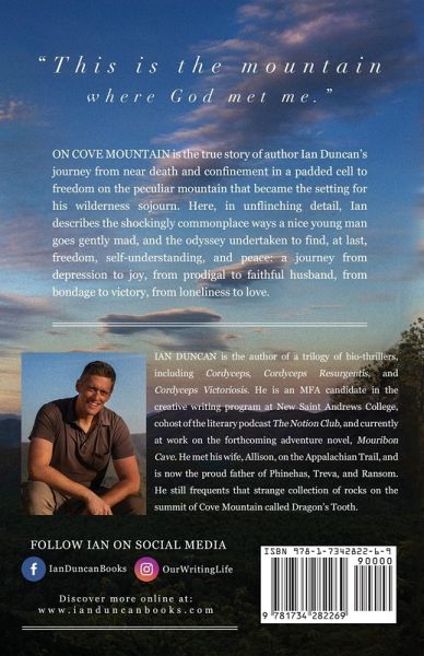 In his new memoir, On Cove Mountain, author Ian Duncan discloses the true story of his commitment to a mental institution in 2001 and his sixteen-year battle to put behind him the stigma, trauma, self-doubt, and legal consequences arising from his journey through depression. Here, in unflinching detail, he describes his passage from confinement in a padded cell to freedom on the peculiar mountain that became the setting for his spiritual sojourn, the wilderness where he had to become lost before he could be found; where he encountered God in a storm, met his wife, and, in his own words, "worked out his salvation with fear and trembling." On Cove Mountain relates the shockingly commonplace ways a nice young man goes gently mad, and the odyssey undertaken to find freedom, self-understanding, and peace. This is the story of one man's exchange of depression for joy, bondage for victory, loneliness for love. This is the story of how he was found.
