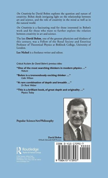 Creativity is fundamental to human experience. In On Creativity David Bohm, the world-renowned scientist, investigates the phenomenon from all sides: not only the creativity of invention and of imagination but also that of perception and of discovery. This is a remarkable and life-affirming book by one of the most far-sighted thinkers of modern times.
