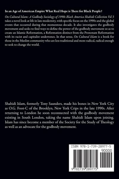 In an Age of American Empire What Real Hope is There for Black People? On Cultural Islam: A Godbody Sociology of 1990s Black America Shahidi Collection Vol 3 takes a novel look at life in late modernity, with specific focus on the 1990s and the global events that occurred during that momentous decade. It also investigates the godbody movement and seeks to find ways to define the power of the godbody movement so as to create an Islamic Renaissance, a Renaissance distinct from the European Renaissance with its racist and capitalist undertones. In that sense, On Cultural Islam is a book for those in the Muslim community who are less traditional and more radical, radical enough to seek to change the world.