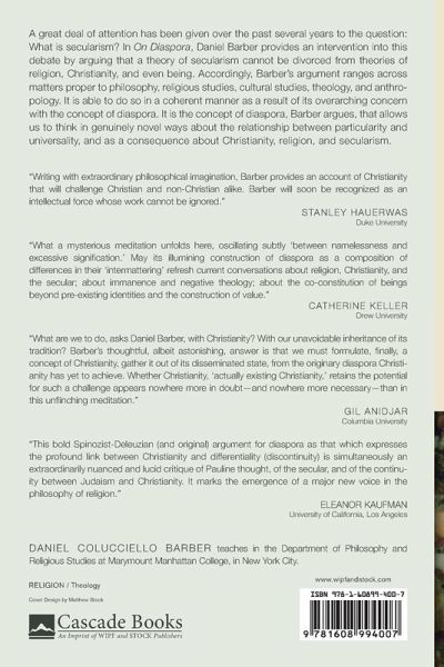 A great deal of attention has been given over the past several years to the question: What is secularism? In On Diaspora, Daniel Barber provides an intervention into this debate by arguing that a theory of secularism cannot be divorced from theories of religion, Christianity, and even being. Accordingly, Barber's argument ranges across matters proper to philosophy, religious studies, cultural studies, theology, and anthropology. It is able to do so in a coherent manner as a result of its overarching concern with the concept of diaspora. It is the concept of diaspora, Barber argues, that allows us to think in genuinely novel ways about the relationship between particularity and universality, and as a consequence about Christianity, religion, and secularism.