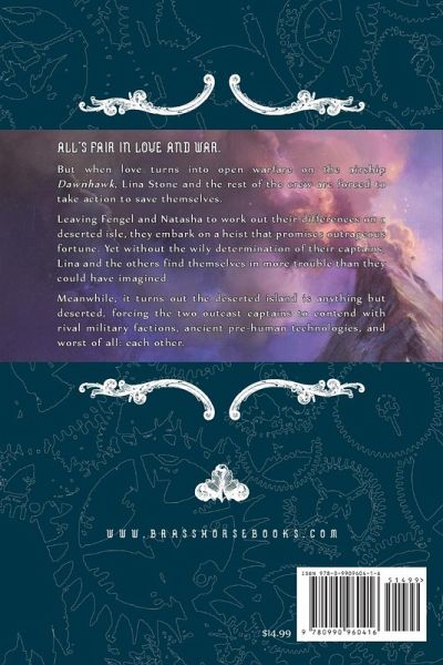 All's fair in love and war. But when love turns into open warfare on the airship Dawnhawk, Lina Stone and the rest of the crew are forced to take action to save themselves. Leaving Fengel and Natasha to work out their differences on a deserted isle, they embark on a heist that promises outrageous fortune. Yet without the wily determination of their captains, Lina and the others find themselves in more trouble than they could have imagined. Meanwhile, it turns out that the deserted island is anything but deserted, forcing the two outcast captains to contend with rival military factions, ancient pre-human technologies, and worst of all: each other.