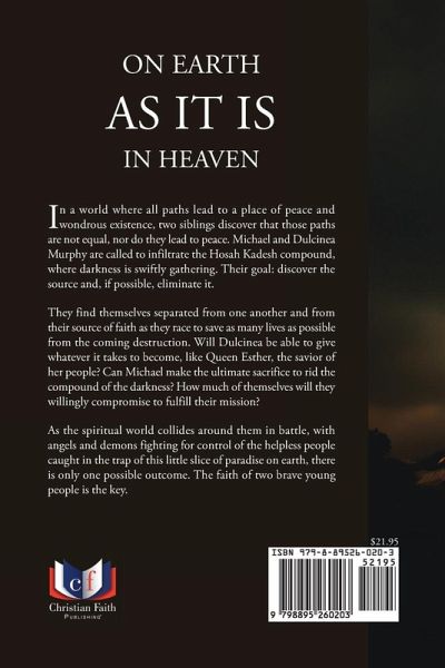 In a world where all paths lead to a place of peace and wondrous existence, two siblings discover that those paths are not equal, nor do they lead to peace. Michael and Dulcinea Murphy are called to infiltrate the Hosah Kadesh compound, where darkness is swiftly gathering. Their goal: discover the source and, if possible, eliminate it. They find themselves separated from one another and from their source of faith as they race to save as many lives as possible from the coming destruction. Will Dulcinea be able to give whatever it takes to become, like Queen Esther, the savior of her people? Can Michael make the ultimate sacrifice to rid the compound of the darkness? How much of themselves will they willingly compromise to fulfill their mission? As the spiritual world collides around them in battle, with angels and demons fighting for control of the helpless people caught in the trap of this little slice of paradise on earth, there is only one possible outcome. The faith of two brave young people is the key.