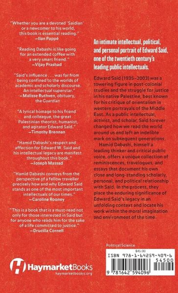Edward Said (1935-2003) was a towering figure in post-colonial studies and the struggle for justice in his native Palestine, best known for his critique of orientalism in western portrayals of the Middle East. As a public intellectual, activist, and scholar, Said forever changed how we read the world around us and left an indelible mark on subsequent generations. Hamid Dabashi, himself a leading thinker and critical public voice, offers a unique collection of reminiscences, travelogues and essays that document his own close and long-standing scholarly, personal and political relationship with Said. In the process, they place the enduring significance of Edward Said's legacy in an unfolding context and locate his work within the moral imagination and environment of the time.