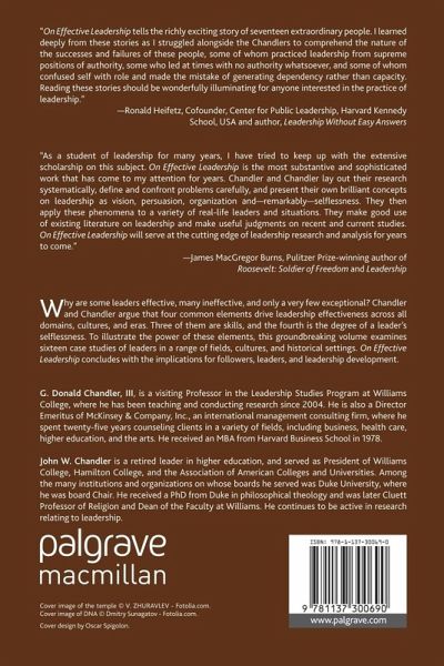 'As a student of leadership for many years, I have tried to keep up with the extensive scholarship on this subject. On Effective Leadership is the most substantive and sophisticated work that has come to my attention for years. Chandler and Chandler lay out their research systematically, define and confront problems carefully, and present their own brilliant concepts on leadership as vision, persuasion, organization and remarkably selflessness. They then apply these phenomena to a variety of real-life leaders and situations. They make good use of existing literature on leadership and make useful judgments on recent and current studies.