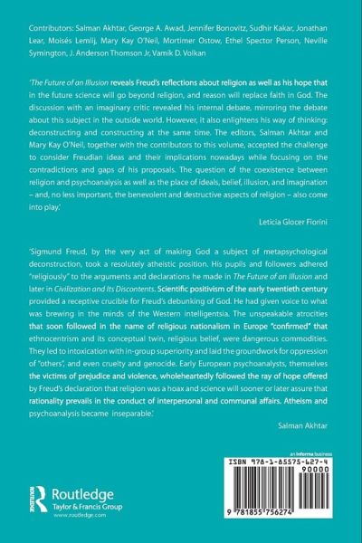"The Future of an Illusion" reveals Freud's reflections about religion as well as his hope that in the future science will go beyond religion, and reason will replace faith in God. The discussion with an imaginary critic revealed his internal debate, mirroring the debate about this subject in the outside world. However, it also enlightens his way of thinking: deconstructing and constructing at the same time. This volume considers Freudian ideas and their implications today, while focusing on the contradictions and gaps in Freud's proposals. The question of the coexistence between religion and psychoanalysis, as well as the place of ideals, belief, illusion, and imagination - and, no less important, the benevolent and destructive aspects of religion - also come into play.