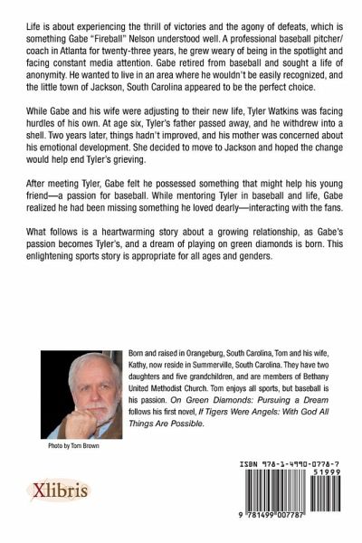 Born and raised in Orangeburg, SC, Tom and his wife, Kathy, now reside in Summerville, SC. They have two daughters, five grandchildren, and attend Bethany United Methodist Church. Tom enjoys all sports, but baseball is his favorite. On Green Diamonds: Pursuing A Dream follows his first novel, If Tigers Were Angels: With God All Things Are Possible. Nature, fishing, golf, and watching his grandchildren play sports, especially baseball, are things Tom loves. His passion for baseball started when he was a child, and he enjoys coaching and teaching his grandsons about America's greatest pastime. As a pitcher back in the good ole days of his youth, he loved being one of the nine players on the green diamond . . . part of a team and having the responsibility that comes with being in charge. Standing on the mound with a one run lead, bases loaded, and two outs in the bottom of the ninth inning provides an adrenaline rush that makes one appreciate being alive. The pressures of the moment, coupled with the will to complete the task for the team is one of the best feelings a person can have. It's what sports, teamwork, life, and believing is all about. Win or lose, experiencing similar types of situations in life helps build character and determines the type of person we ultimately become. Tom had a childhood dream to play professional baseball and pursued his dream with passion. Unfortunately, he wasn't blessed with the talent necessary to fulfill that dream. Not to worry . . . it wasn't meant to be, and that's what life is all about. You move on, and learn to pursue new dreams. What Tom has found in his adulthood is a gift for telling and writing stories. He said that writing a book about sports . . . baseball . . . was a wonderful experience, and he enjoyed watching it come together. The same passion he had long ago for baseball has transferred into a current passion for writing novels, and that's a good thing. The chance to bring some of his experiences to life in the form of a novel is a blessing in itself, and he does not take the opportunity for granted. Tom is no longer pursuing his dream . . . he's actually living it! Now . . . it's time to yell, "Play ball!"