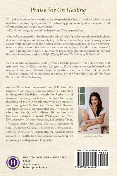 In On Healing, Dr. Amitha Kalaichandran MD-a physician, journalist, and integrative medicine expert, guides readers on a transformative journey to understand true healing and what it means to live longer, healthier lives. Drawing from her medical training and real-world experiences, she identifies 12 essential components of healing, each explored through powerful stories and backed by scientific evidence. Blending expert insights and cross-cultural perspectives, On Healing challenges the limitations of modern healthcare, advocating for a holistic approach that honors the body's natural ability to heal. Dr. Kalaichandran's debut is a compelling blueprint for anyone seeking a fuller understanding of healing, making it an essential read for navigating today's evolving health, longevity, and wellness landscape.