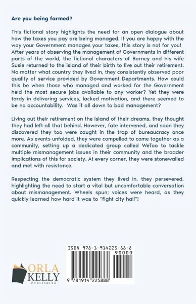 Are you being farmed? This is a fictional story about how the taxes you pay are being managed. If you are happy with the way your Government manages your taxes this story is not for you! If not read on. After years of observing the management of Governments in different parts of the world, the fictional characters of Barney and his wife Susie returned to the island of their birth to live out their retirement. In which ever country they lived, they observed a consistency in the poor quality of service provided by Government Departments. How could this be, when those who managed and worked for government held the most secure jobs available to any worker. Why were they tardy in the delivery of services? Why were they not motivated? Was it laziness? Was it lack of accountability? Was it absence of responsibleness? Was it lack of direction? Was it bad management? Living out their retirement in the fictional island of their dreams, they thought they had left all that behind them. Fate intervened and soon they discovered they too were caught in the trap of bureaucracy. Events led to they and their neighbors' forming a community group called WeToo to tackle several issues of mismanagement in their community. The group railed at the wider implications of this for society at large and the excessive increasing cost to taxpayers of mismanagement. They identified symptoms of the problem; analyzed and then came up with solutions to fix the problem. They engaged with themselves and the authorities in order to resolve issues, but to no avail. Respecting the democratic system they lived in, they established action groups in each specific area of concern with the aim of at least starting a conversation about mismanagement. Wheels spun; voices were heard but they soon learned how hard it was to "fight city hall"!