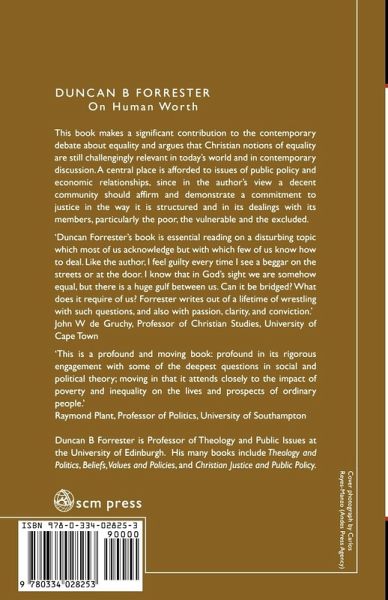 This book makes a significant contribution to the contemporary debate about equality and argues that Christian notions of equality are still challengingly relevant in today's world and in contemporary discussion.A central place is afforded to issues of public policy and economic relationships, since in the author's view a decent community should affirm and demonstrate a commitment to justice in the way it is structured and in its dealings with its members, particularly the poor, the vulnerable and the excluded. Duncan Forrester's book is essential reading on a disturbing topic which most of us acknowledge but with which few of us know how to deal. Like the author, I feel guilty every time I see a beggar on the streets or at the door. I know that in God's sight we are somehow equal, but there is a huge gulf between us. Can it be bridged? What does it require of us? Forrester writes out of a lifetime of wrestling with such questions, and also with passion, clarity, and conviction.' John W de Gruchy, Professor of Christian Studies, University of Cape Town 'This is a profound and moving book: profound in its rigorous engagement with some of the deepest questions in social and political theory; moving in that it attends closely to the impact of poverty and inequality on the lives and prospects of ordinary people.' Raymond Plant, Professor of Politics, University of Southampton Duncan B Forrester is Professor of Theology and Public Issues at the University of Edinburgh. His many books include Theology and Politics, Beliefs, Va/ues and Policies, and Christian justice and Public Policy.