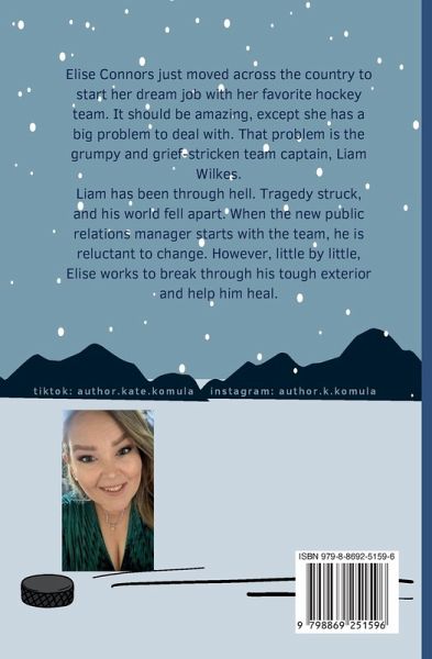 Elise Connors just moved across the country to start her dream job with her favorite hockey team. It should be amazing, except she has a big problem to deal with. That problem is the grumpy and grief-stricken team captain, Liam Wilkes. Liam has been through hell. Tragedy struck, and his world fell apart. When the new public relations manager starts with the team, he is reluctant to change. However, little by little, Elise works to break through his tough exterior and help him heal.