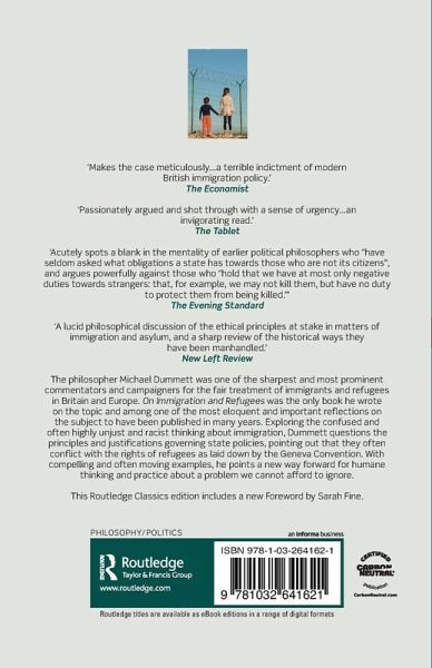 The philosopher Michael Dummett was one of the sharpest and most prominent commentators and campaigners for the fair treatment of immigrants and refugees in Britain and Europe. On Immigration and Refugees was the only book he wrote on the topic and among one of the most eloquent and important reflections on the subject to have been published in many years. Exploring the confused and often highly unjust and racist thinking about immigration, Dummett questions the principles and justifications governing state policies, pointing out that they often conflict with the rights of refugees as laid down by the Geneva Convention. With compelling and often moving examples, he points a new way forward for humane thinking and practice about a problem we cannot afford to ignore.