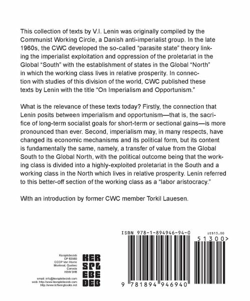 This collection of texts by V.I. Lenin was originally compiled by the Communist Working Circle, a Danish anti-imperialist group. In the late 1960s, the CWC developed the so-called "parasite state" theory linking the imperialist exploitation and oppression of the proletariat in the Global "South" with the establishment of states in the Global "North" in which the working class lives in relative prosperity. In connection with studies of this division of the world, CWC published these texts by Lenin with the title "On Imperialism and Opportunism."What is the relevance of these texts today? Firstly, the connection that Lenin posits between imperialism and opportunism-that is, the sacrifice of long-term socialist goals for short-term or sectional gains-is more pronounced than ever. Second, imperialism may, in many respects, have changed its economic mechanisms and its political form, but its content is fundamentally the same, namely, a transfer of value from the Global South to the Global North, with the political outcome being that the working class is divided into a highly-exploited proletariat in the South and a working class in the North which lives in relative prosperity. Lenin referred to this better-off section of the working class as a "labor aristocracy." With an introduction by former CWC member Torkil Lauesen.