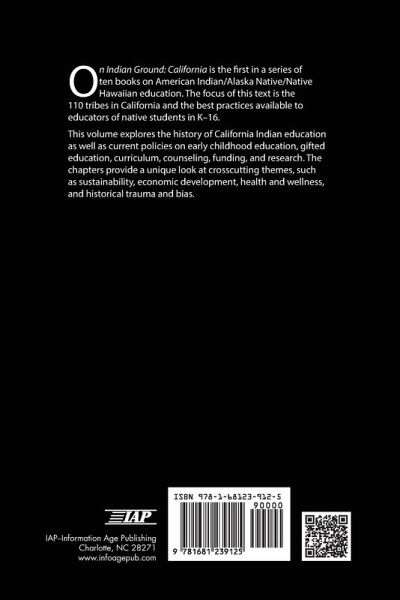 On Indian Ground: California is the first in a series of ten books on American Indian/Alaska Native/Native Hawaiian education. The focus of this text is the 110 tribes in California and the best practices available to educators of native students in K-16. This volume explores the history of California Indian education as well as current policies on early childhood education, gifted education, curriculum, counseling, funding, and research. The chapters provide a unique look at crosscutting themes, such as sustainability, economic development, health and wellness, and historical trauma and bias.