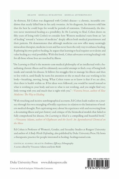 At thirteen, Ed Cohen was diagnosed with Crohn's disease-a chronic, incurable condition that nearly killed him in his early twenties. At his diagnosis, his doctors told him that the best he could hope for would be periods of remission. Unfortunately, doctors never mentioned healing as a possibility. In On Learning to Heal, Cohen draws on fifty years of living with Crohn's to consider how Western medicine's turn from an "art of healing" toward a "science of medicine" deeply affects both medical practitioners and their patients. He demonstrates that although medicine can now offer many seemingly miraculous therapies, medicine is not and has never been the only way to enhance healing. Exploring his own path to healing, he argues that learning to heal requires us to desire and value healing as a vital possibility. With this book, Cohen advocates reviving healing's role for all those whose lives are touched by illness.