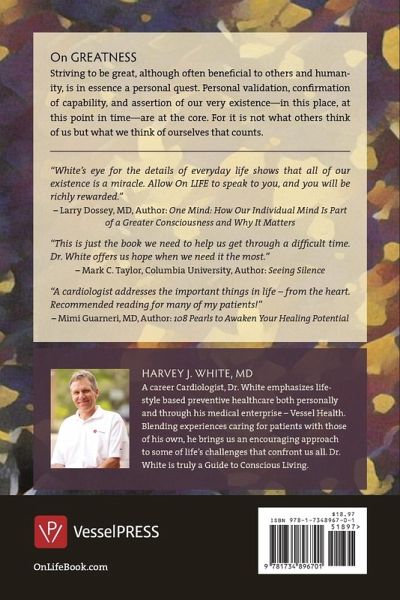 Each of us, from time to time gets stuck. We get stuck on life issues and challenges that may seem trivial but are so hard to navigate and move beyond. Take simple moments like trying to find the right word to express one's thoughts, choosing when to say enough to a person or situation, trying to stay buoyed in inclement weather, or even getting up the energy to travel. What about more dramatic challenges like deciding to start something new or reflecting on whether you have been successful in life. These and many more confront us near daily. In On LIFE: Thoughts on Life's Challenges, Dr. Harvey J. White brings personal experience and his 30 years as a cardiologist to each of us in an easy to read book which addresses these and other challenges. Moreover, he encourages us to reach beyond the solutions he poses and craft our own. For that the engaged reader will be well rewarded.