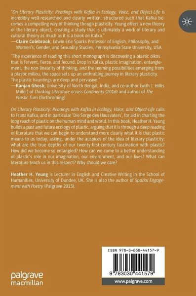 "This book dwells with Kafka's Kurzprosa to elucidate the plastic processes of reading and encourage a deeper understanding of 'the hold that plastic exerts on us' ... . On Literary Plasticity offers an elegant contribution to German studies and ecocriticism alike. ... Yeung's study offers rich content to kafka scholars searching for new readings of Die sorge des Hausvatersand to critics fascinated by literary plasticity." (Paul Sutherland Sherban, Modern Language Review, Vol. 117 (2), April, 2022)