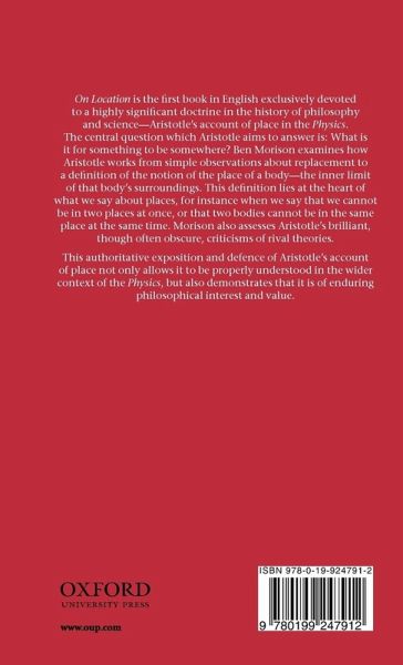 This is the first book devoted to a highly significant doctrine in the history of philosophy and science--Aristotle's account of place in the Physics. Morison presents an authoritative analysis and defense of this account of what it is for something to be somewhere, and demonstrates its enduring philosophical interest and value.