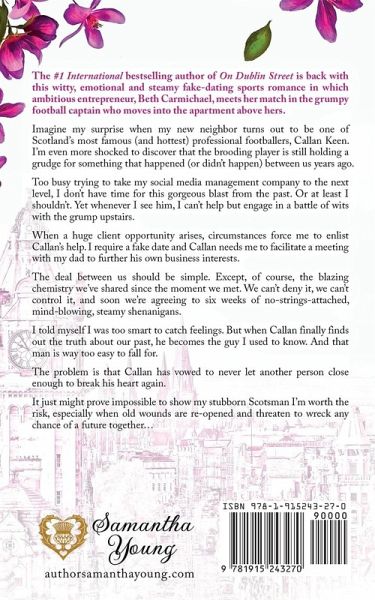"[A]mbitious entrepreneur, Beth Carmichael, meets her match in the grumpy football captain who moves into the apartment above hers" --